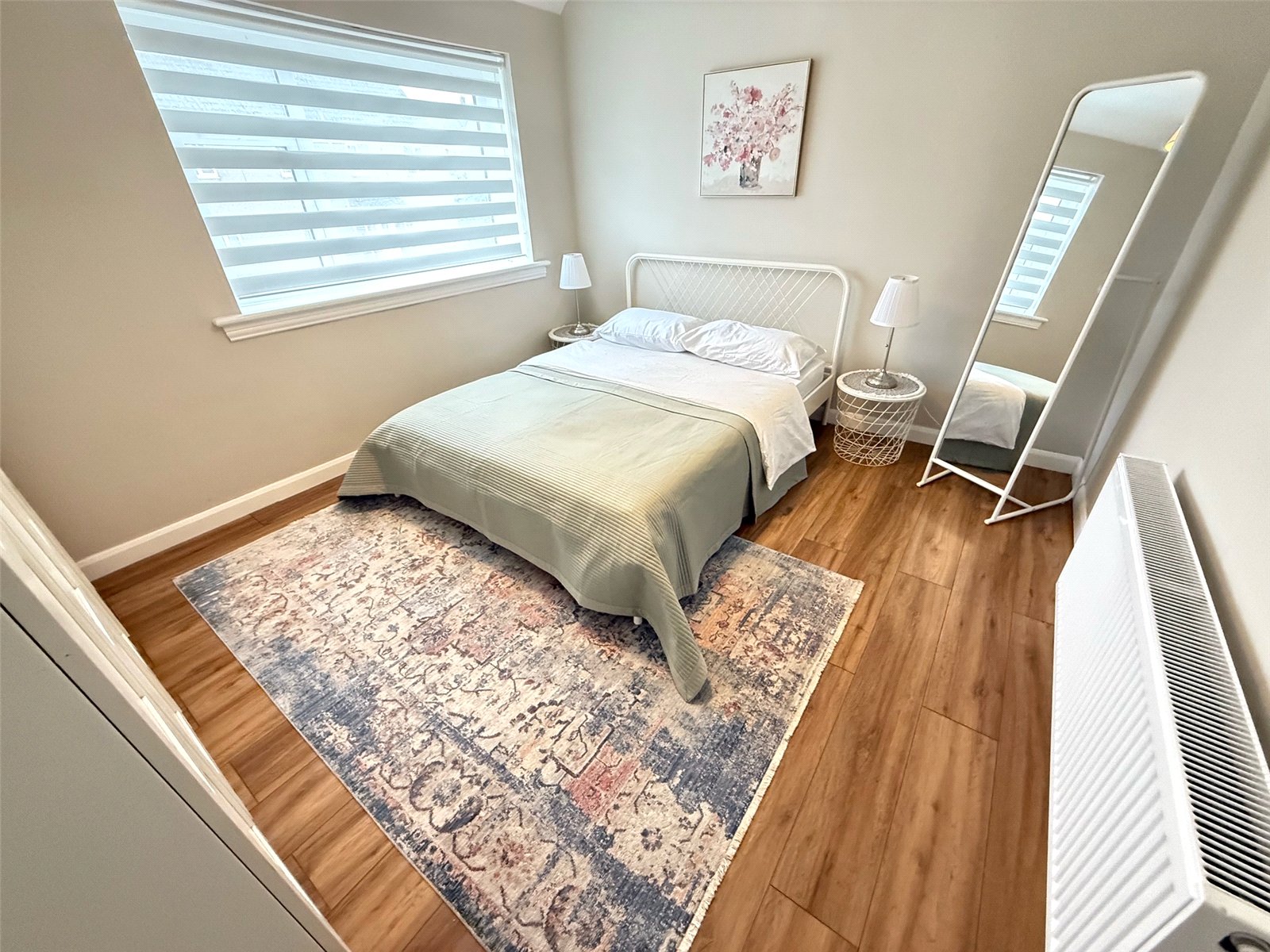 Master bedroom including laminate flooring, a radiator and a double glazed window to the front.