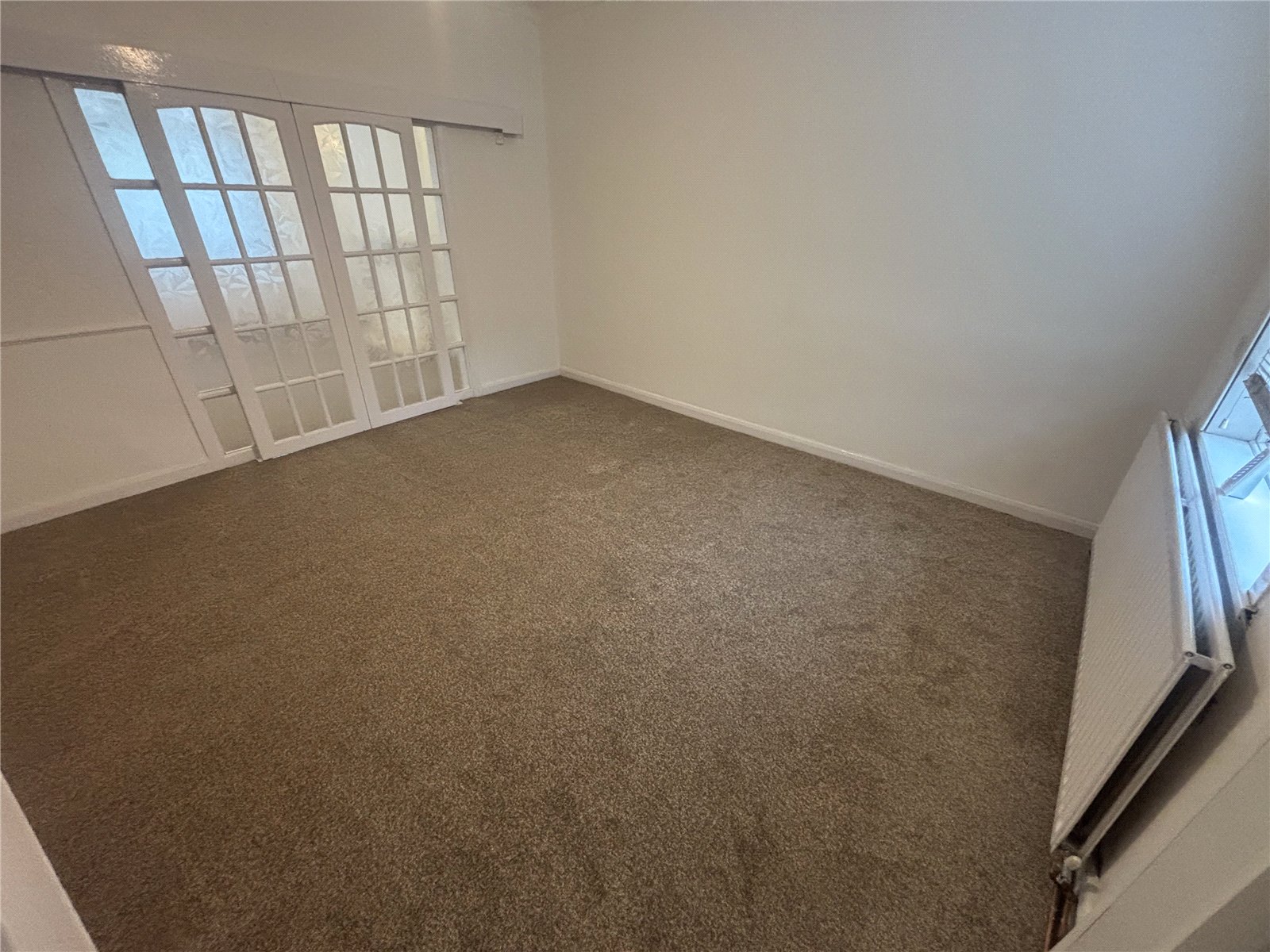 Generous dining room or 2nd reception with carpet flooring, upvc double glazed window, wall mounted radiator and sliding doors that open fully into the living room. There are stairs leading to the first floor and a foor leading to the kitchen area.