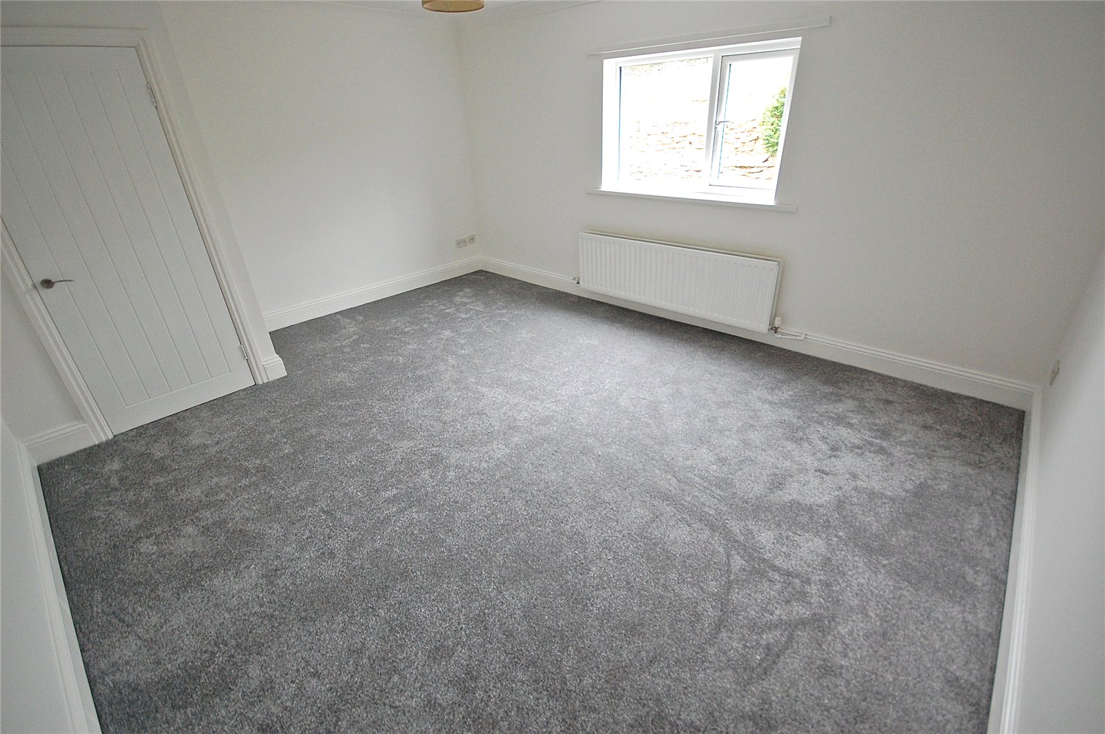 Bedroom with carpet flooring, a radiator and a double glazed window to the rear.