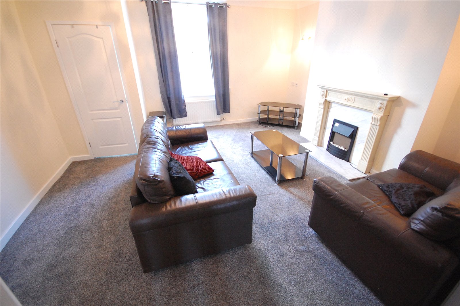 Living room which includes new carpet flooring, electric fire, radiator and upvc double glazed windows.
