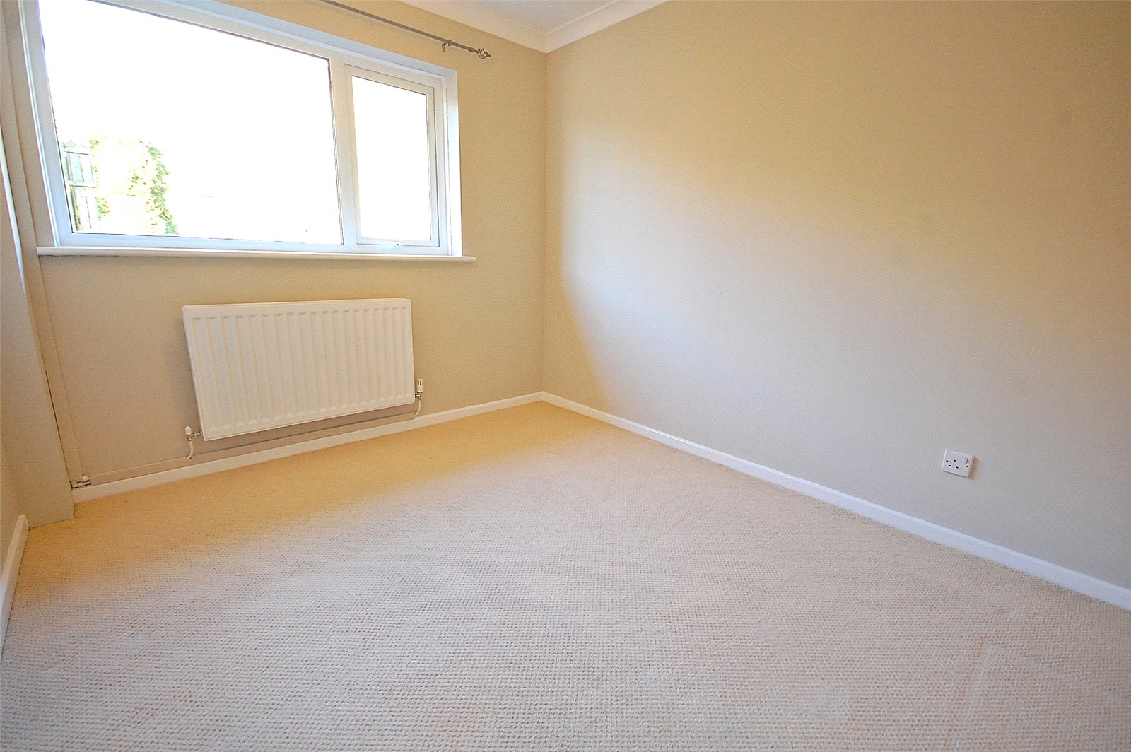 Bedroom including carpet flooring, a radiator and a double glazed window to the rear.