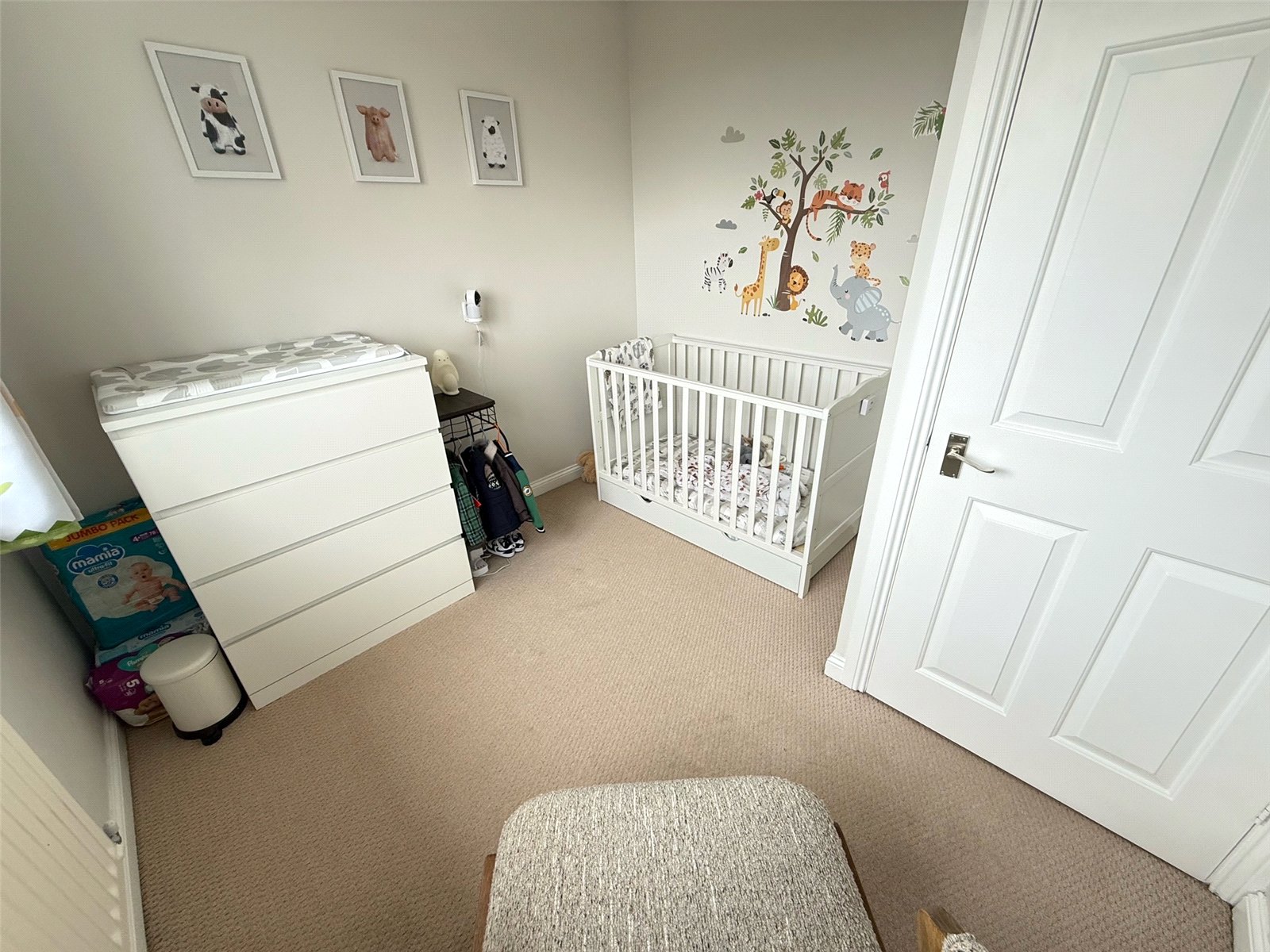 Including carpet flooring and a built in storage cupboard.