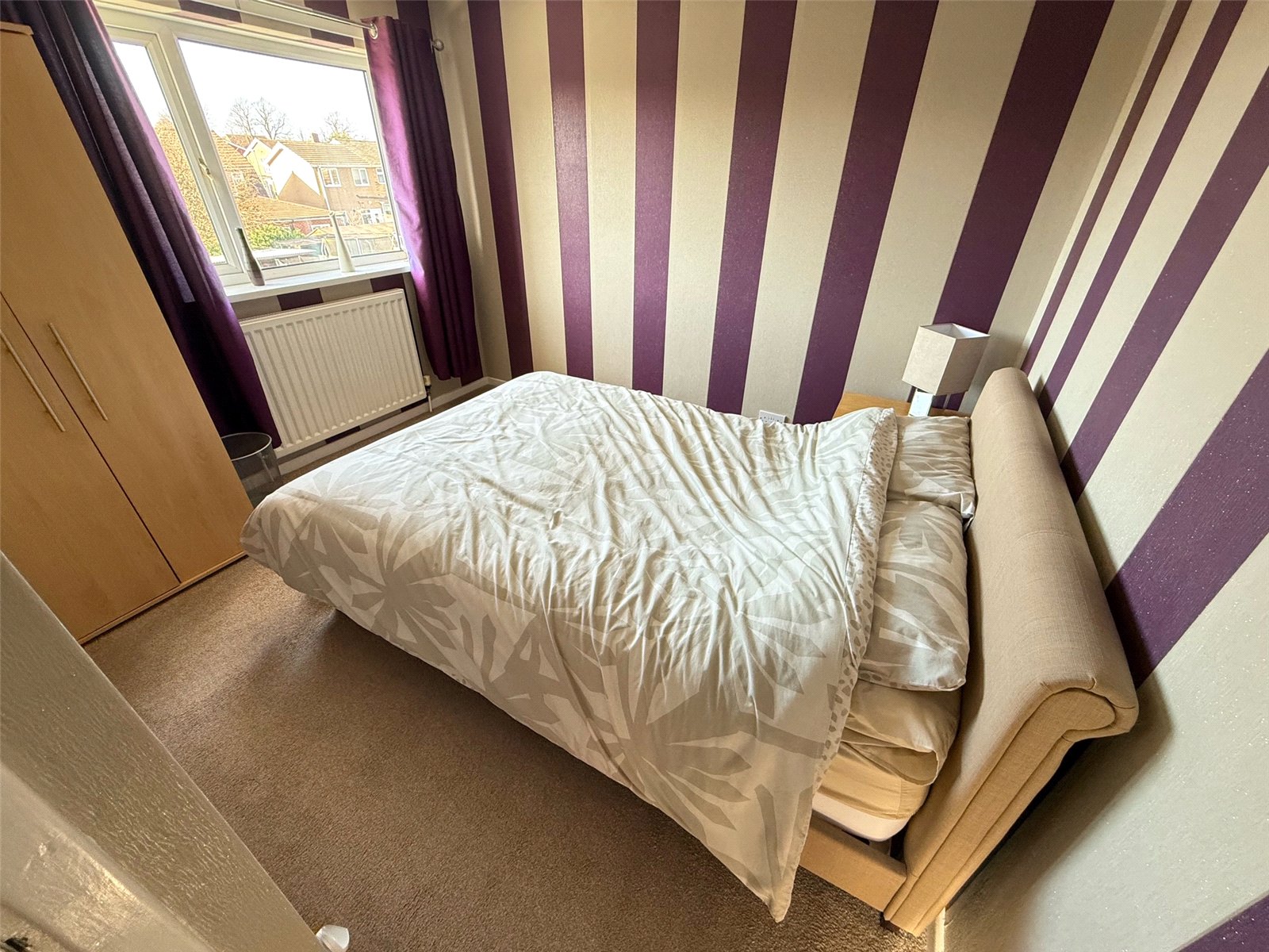 Bedroom including a built in cupboard, carpet flooring, a radiator and a double glazed window to the front.