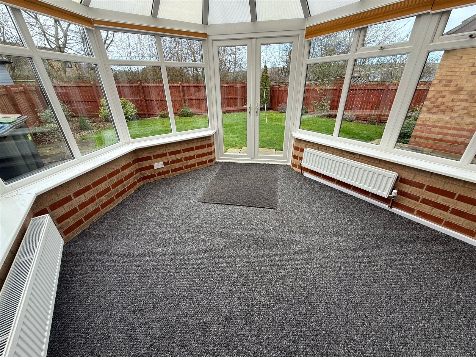Including carpet flooring, two radiators, double glazed windows to the side and rear. French doors lead to the rear garden.