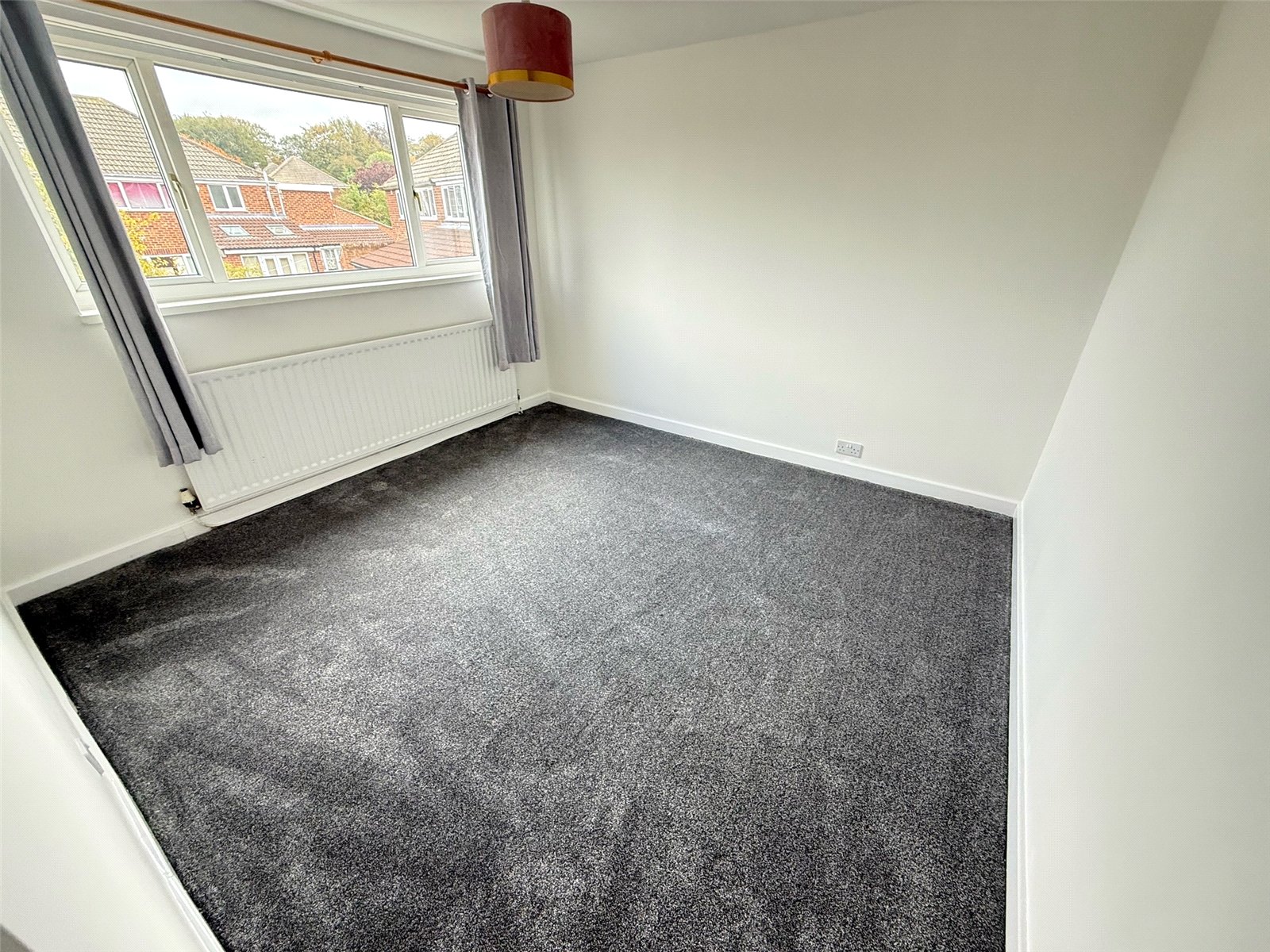 Bedroom with carpet flooring, a radiator and a double glazed window to the rear.